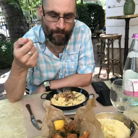 Szigeti Péter újságíró médiaszakember imád főzni. Foodie családból jön, ahol mindig is fontos volt az étel: na nem csak azért, mert anyukája élelmiszervegyész, de azért is, mert mindig az ebédlőasztalnál gyűlt össze a család, itt voltak, vannak a legjobb beszélgetések. Még úgy is szívesen készít mindent, hogy ő maga peszkateriánus, azaz halevő vega.